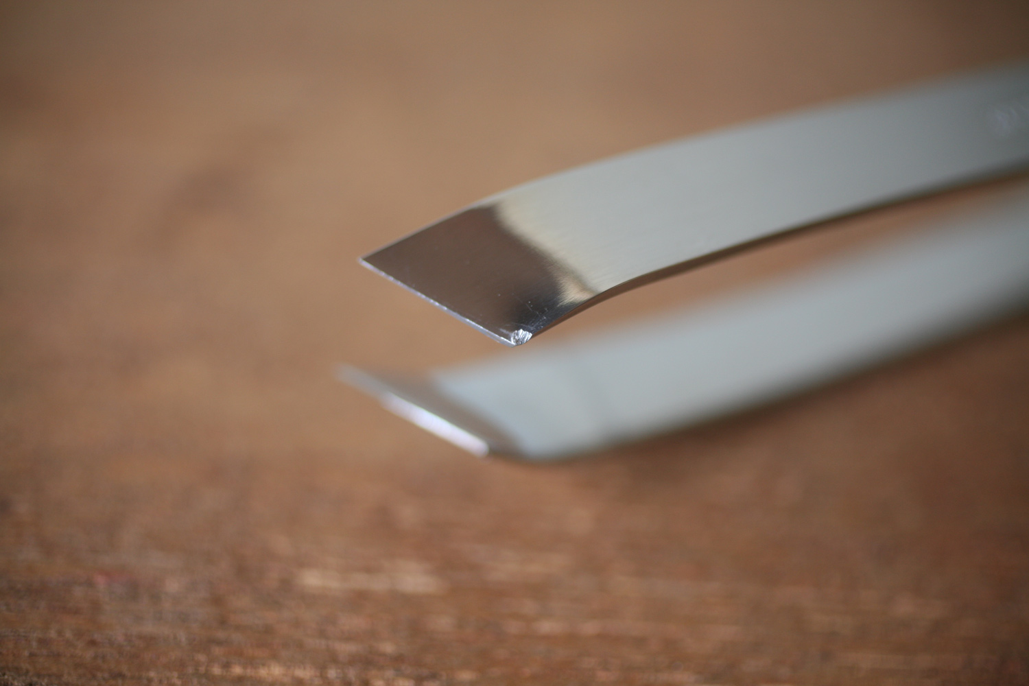 Eine Fischgrätenpinzette mit abgewinkelter Spitze für hervorragende Sichtbarkeit.