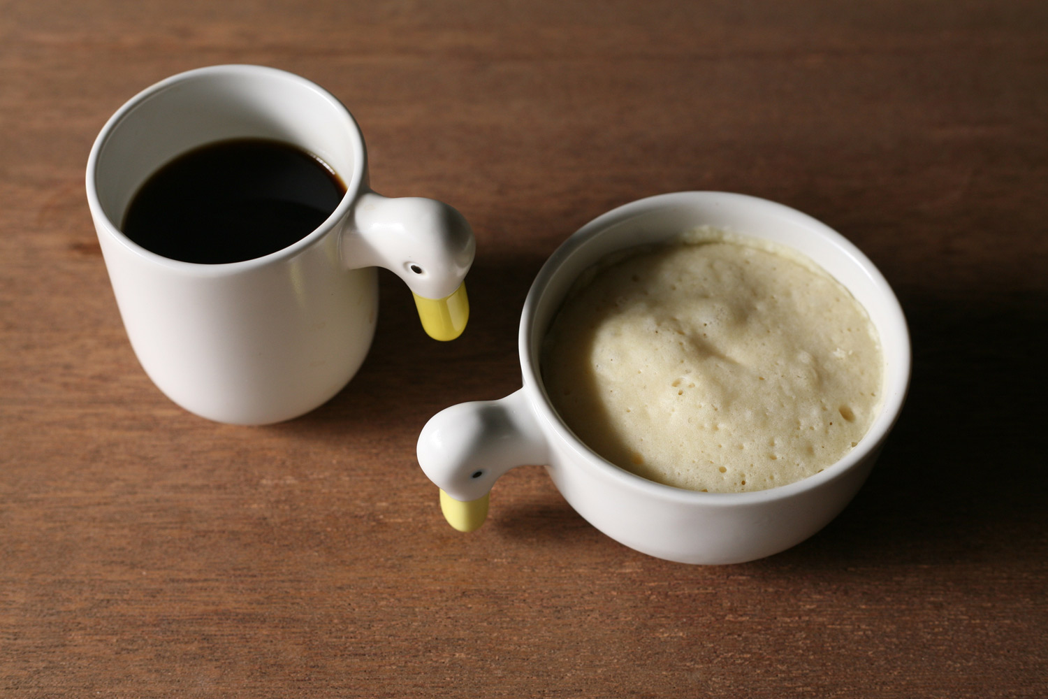 飄々とした表情がなんともかわいらしいアヒルマグ。毎日眺めても飽きのこない、テーブルの上の人気者です。