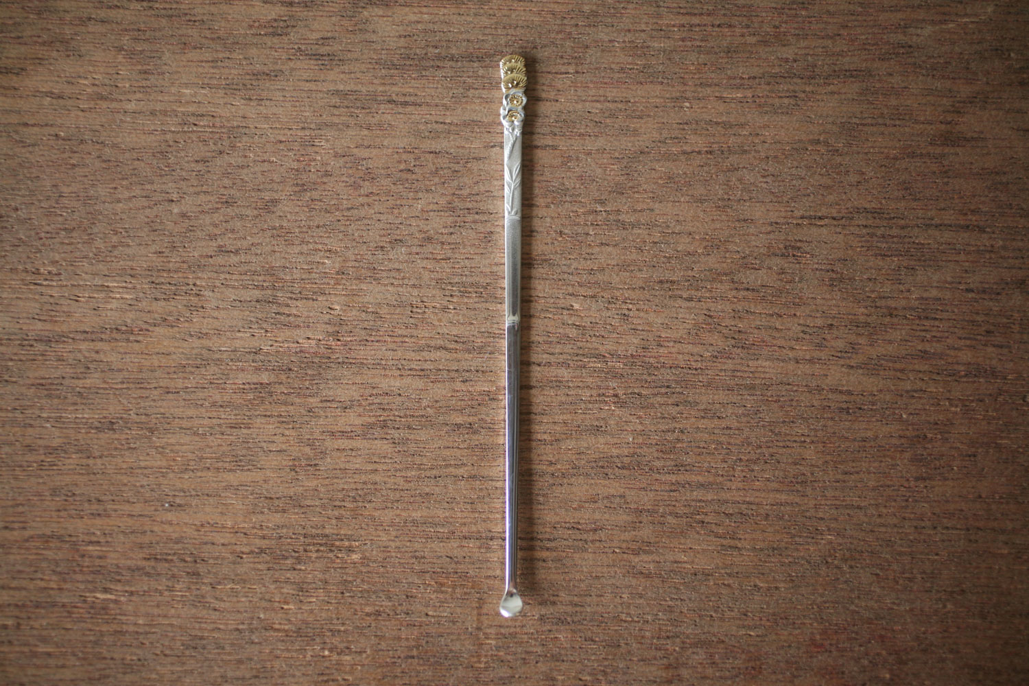 滑らかな使い心地にこだわった銀の耳かきです。先端部分に丸みを持たせてあります。金属の中でも特に柔らかい銀は、繊細な耳内の皮膚にも優しい肌触り。熱伝導にも優れているので、金属独特の冷やりとした感触が少ないのも特長です。適度な弾力があり、曲げにも強く、衛生的にも抗菌作用の強い銀ならではの安心感が。滑らかな使い心地は、一度使うとやみつきになるほど。専用の桐箱にお入れしてお届けいたします。