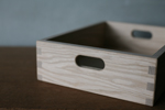 10種類以上の国産の無垢材を使い、飛騨高山の自社工房にて一つ一つ丁寧に加工して作られています。木目や肌触り、香り、色合いなどの樹種の違いを五感を通じて楽しんでいただけます。