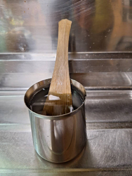 しゃもじを出し入れするのに十分な広さの口径と、底に向かって幅が広がる安定的な形状は、台所の道具に不可欠な実用性の高さを満たしてくれます。継ぎ目がなく丸洗いできるオールステンレスのしゃもじ入れは清潔に使え、しっかりとした板圧は耐久性にも優れています。