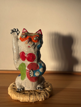 ■今回購入させていただいた【わらむ】ポットマットですが、スペイン人の作家さんが作られた招き猫の台座として使わせていただいています。斬新な招き猫に藁で編まれた台座が不思議とよく合います(自分的には)。【辻和金網】手付き焼き網は、お正月のお餅を焼こうと思い購入させていただきました。心に余裕がある時に、ゆっくりトーストでも焼いてみたいと思います。